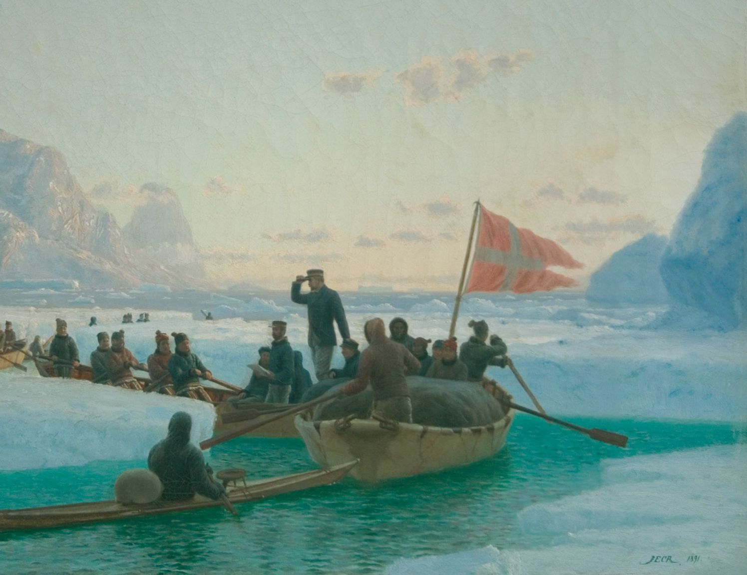 I 1883 satte en dansk ekspedition kurs mod den uudforskede østkyst i traditionelle konebåde. Men bag jagten på Dannebrog og forsvundne nordboere gemmer sig en fortælling om overlevelse, et folk i nød og de svære etiske valg, videnskaben krævede.